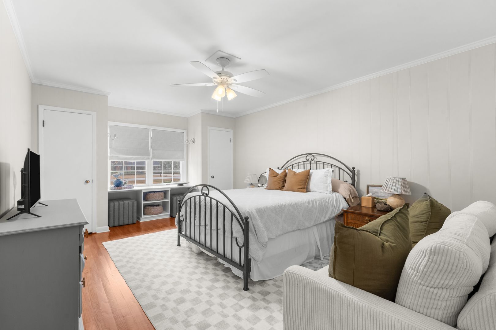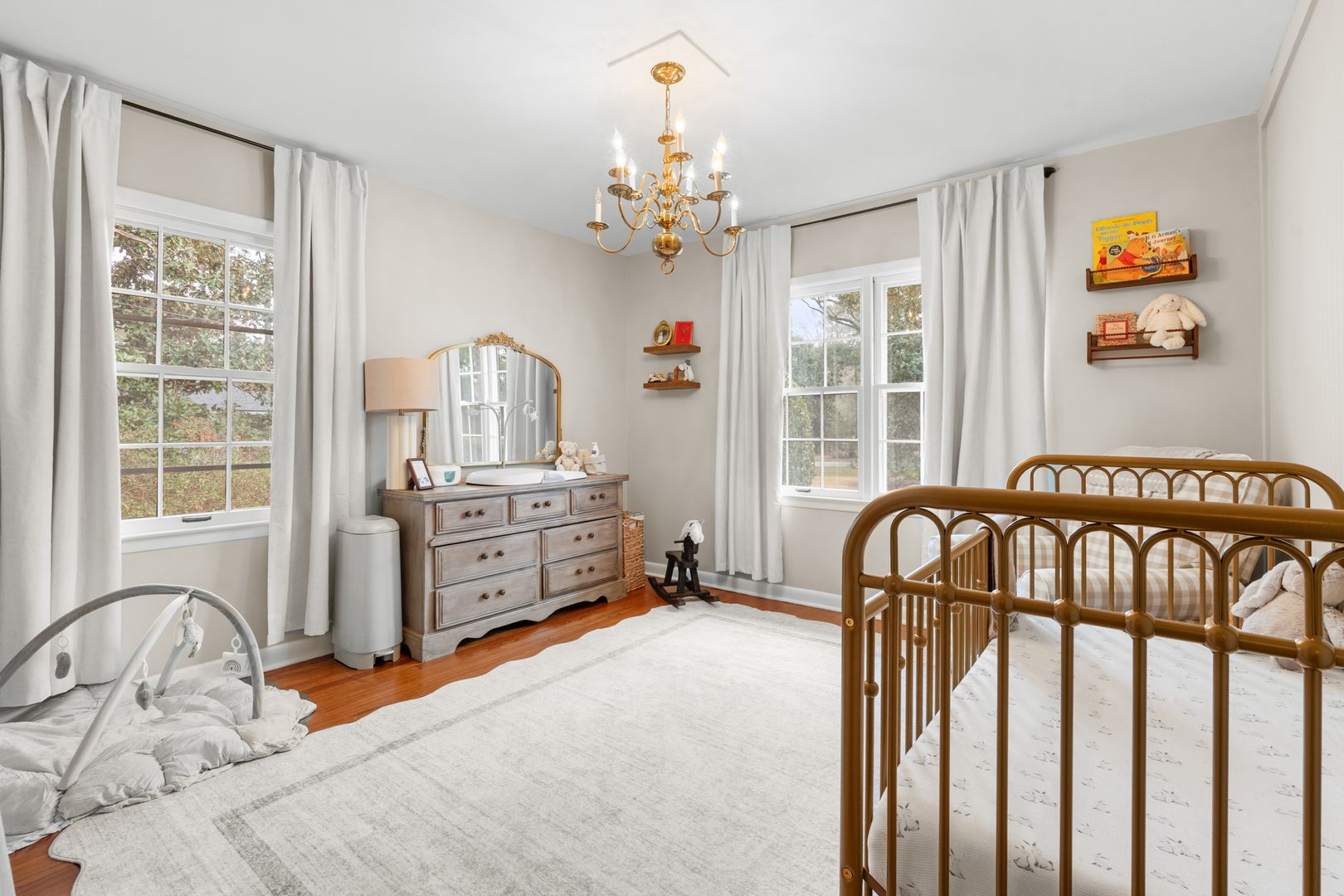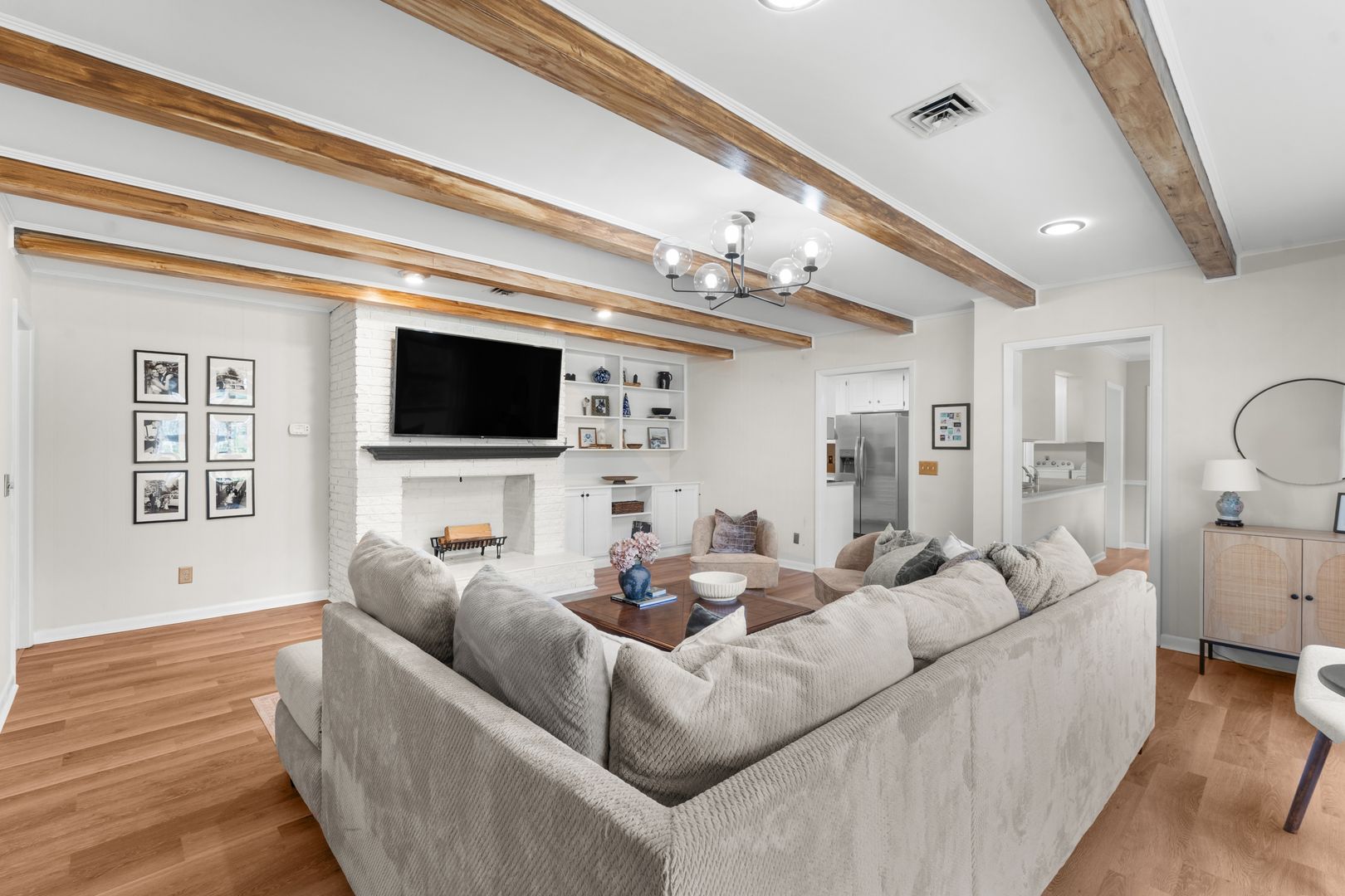 This charming 3-bedroom, 2-bath home offers classic style, thoughtful updates, and inviting living spaces on a beautifully landscaped lot. A welcoming front porch and manicured lawn set the tone as you step inside to find light-filled interiors with hardwood floors and a comfortable, flowing layout. The spacious living room features large windows that bring in abundant natural light and create a warm, relaxing atmosphere.